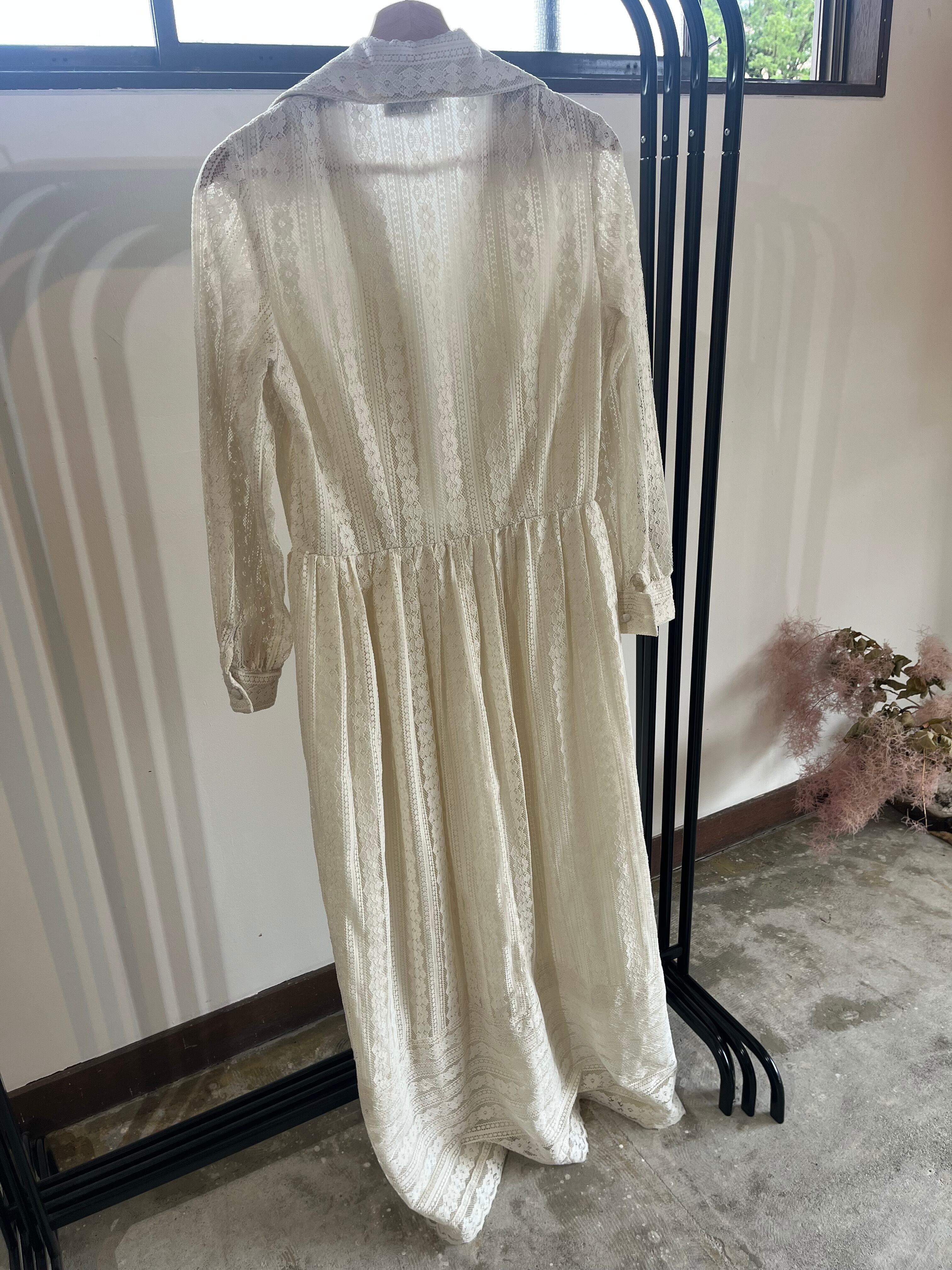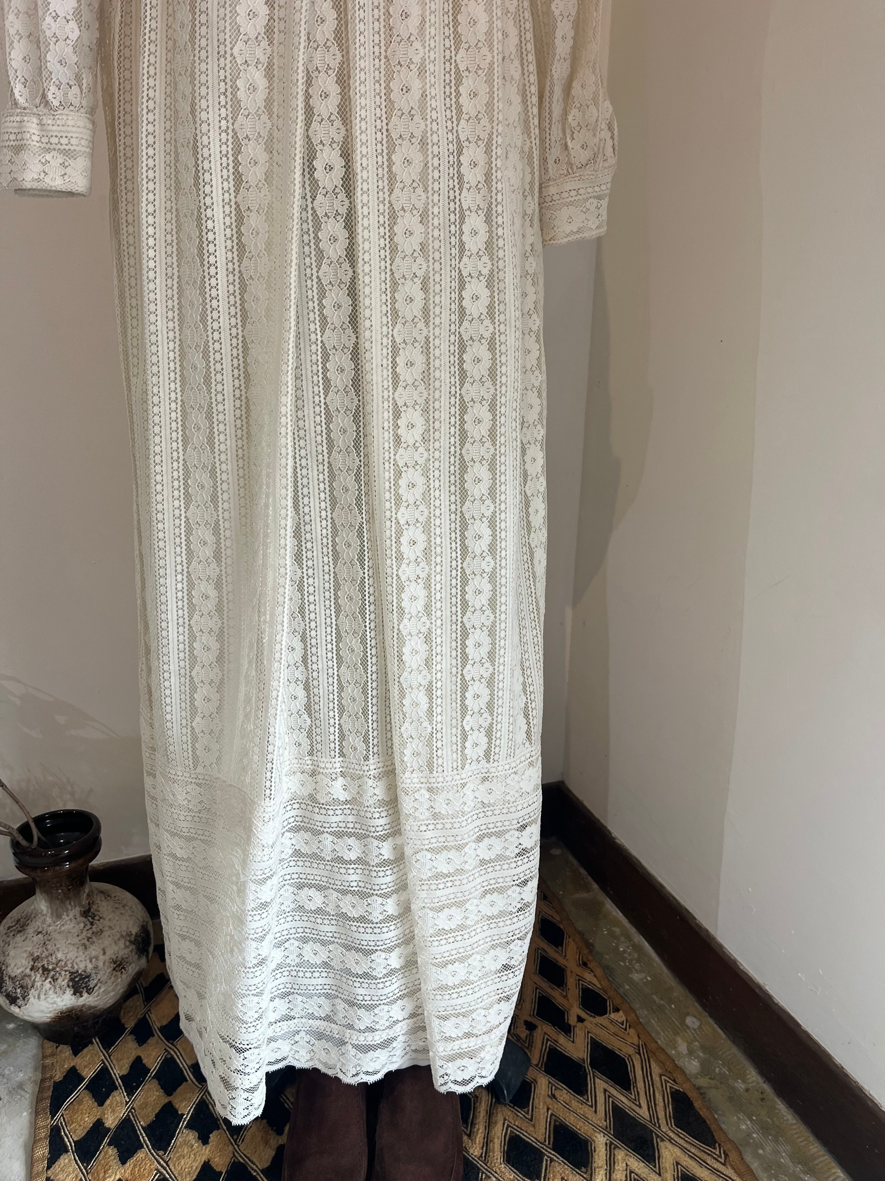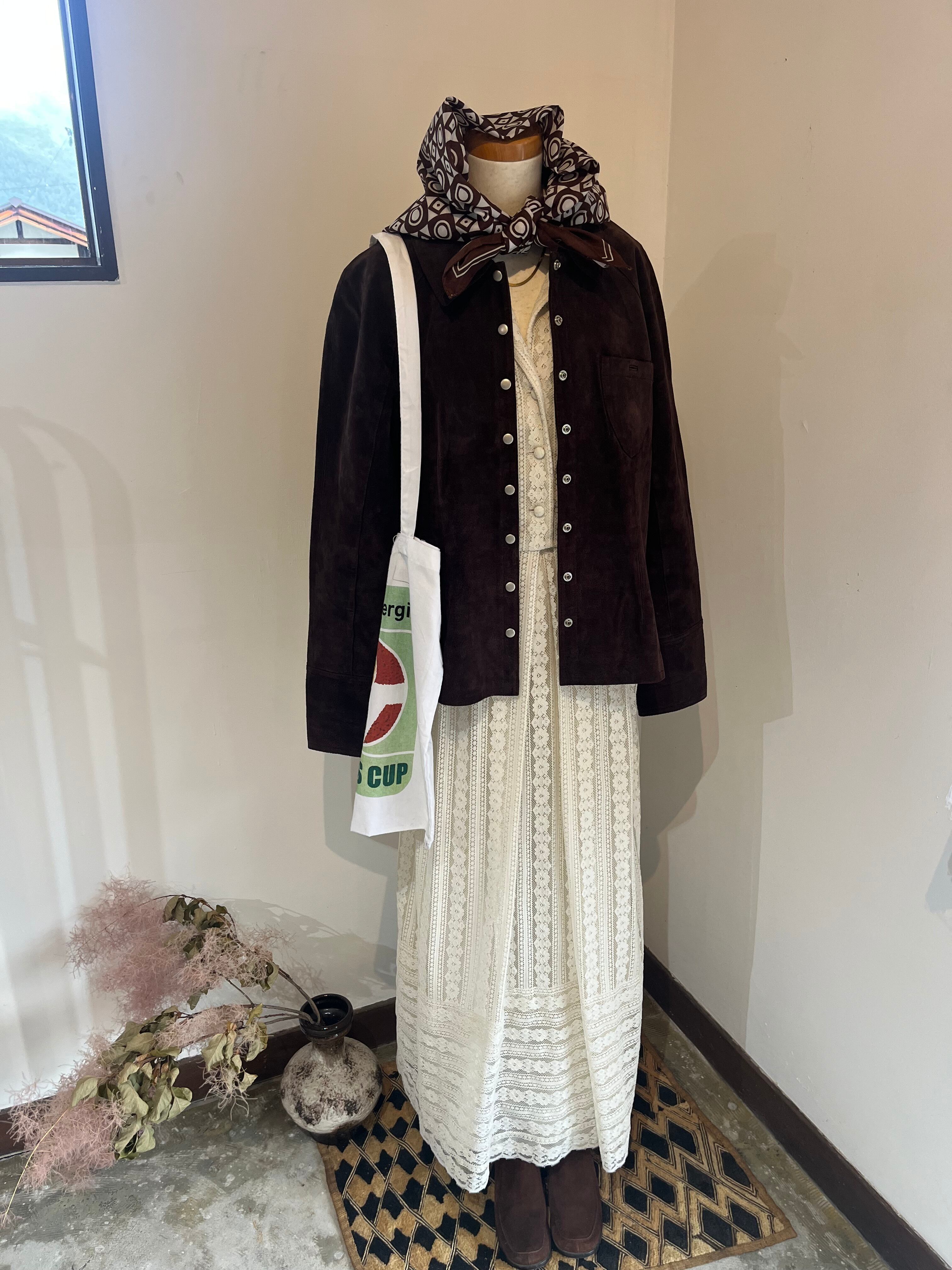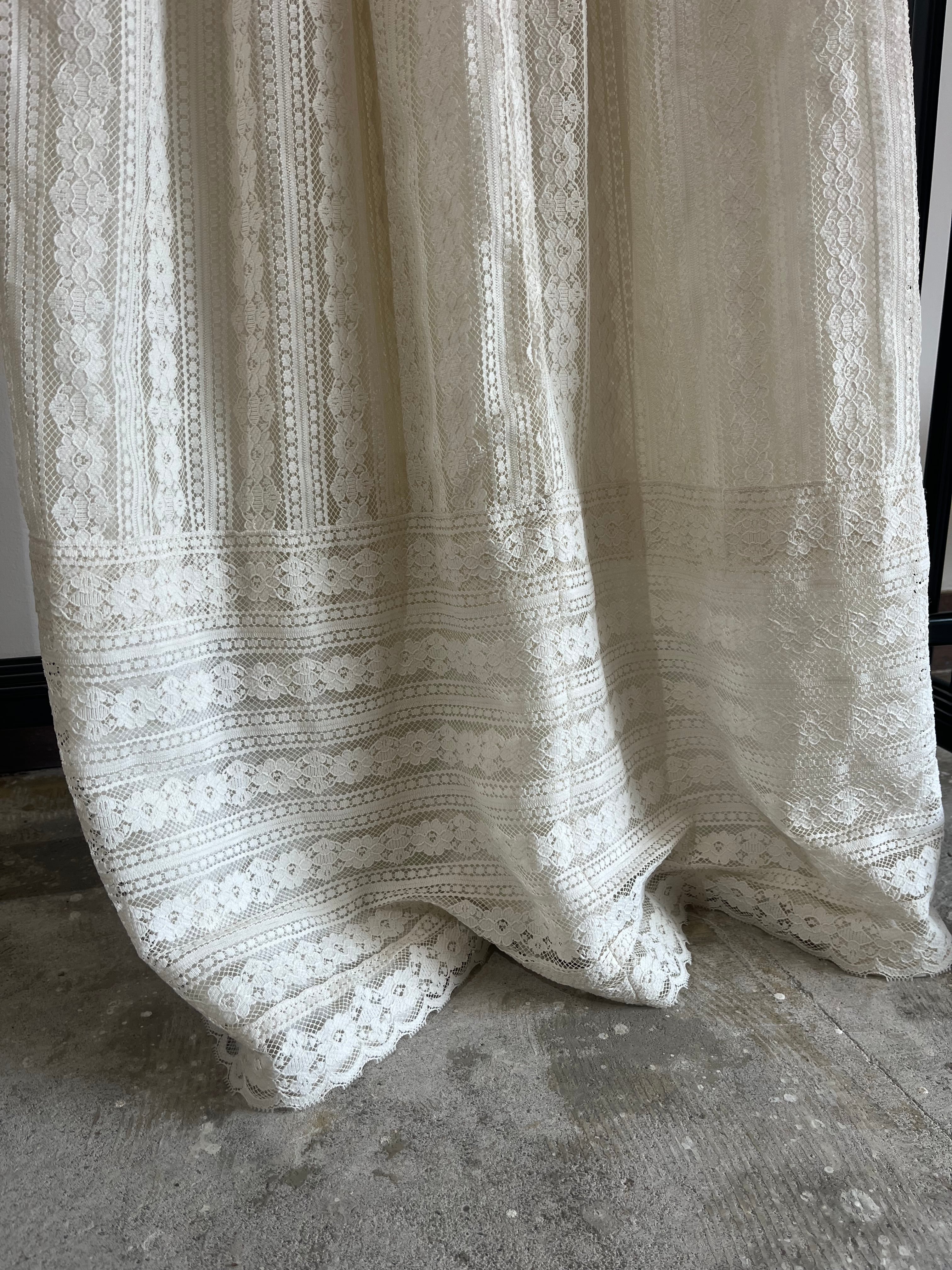 丁寧に施されたアンティークレースが美しいヴィンテージドレス。ウェディングシーンはもちろん、ニットやスウェットをレイヤードしてレースのスカートのように着回すのもおすすめ。