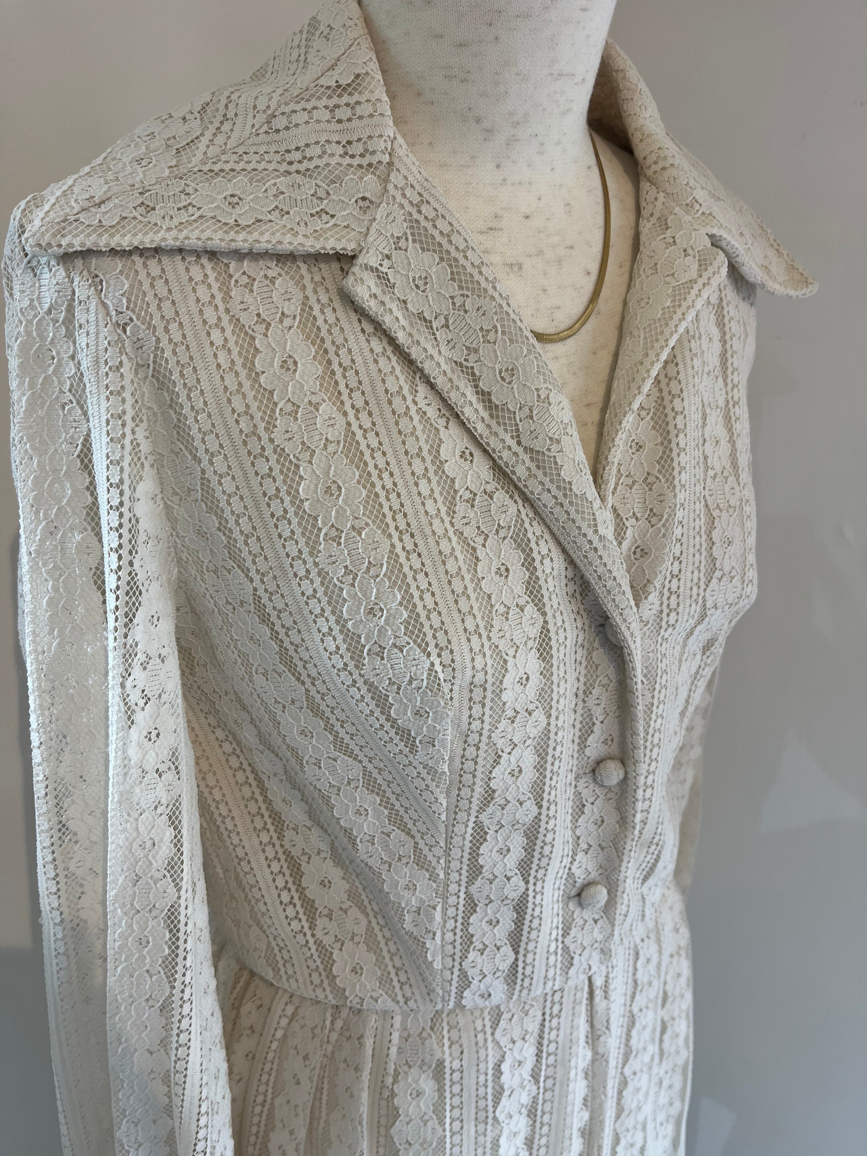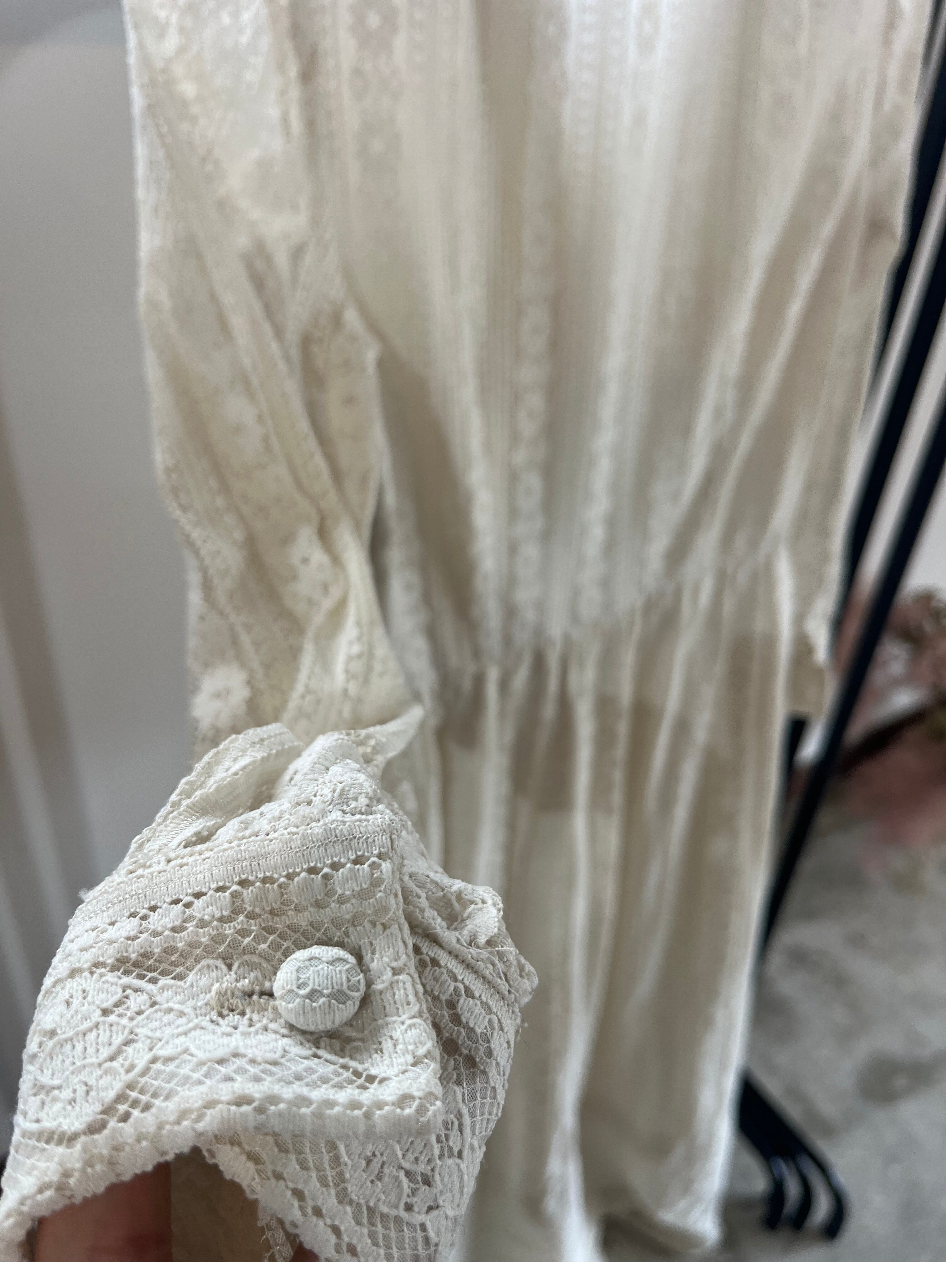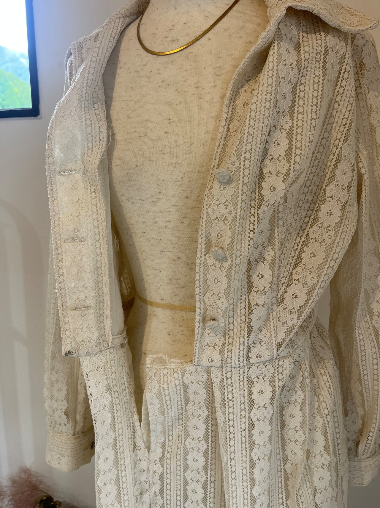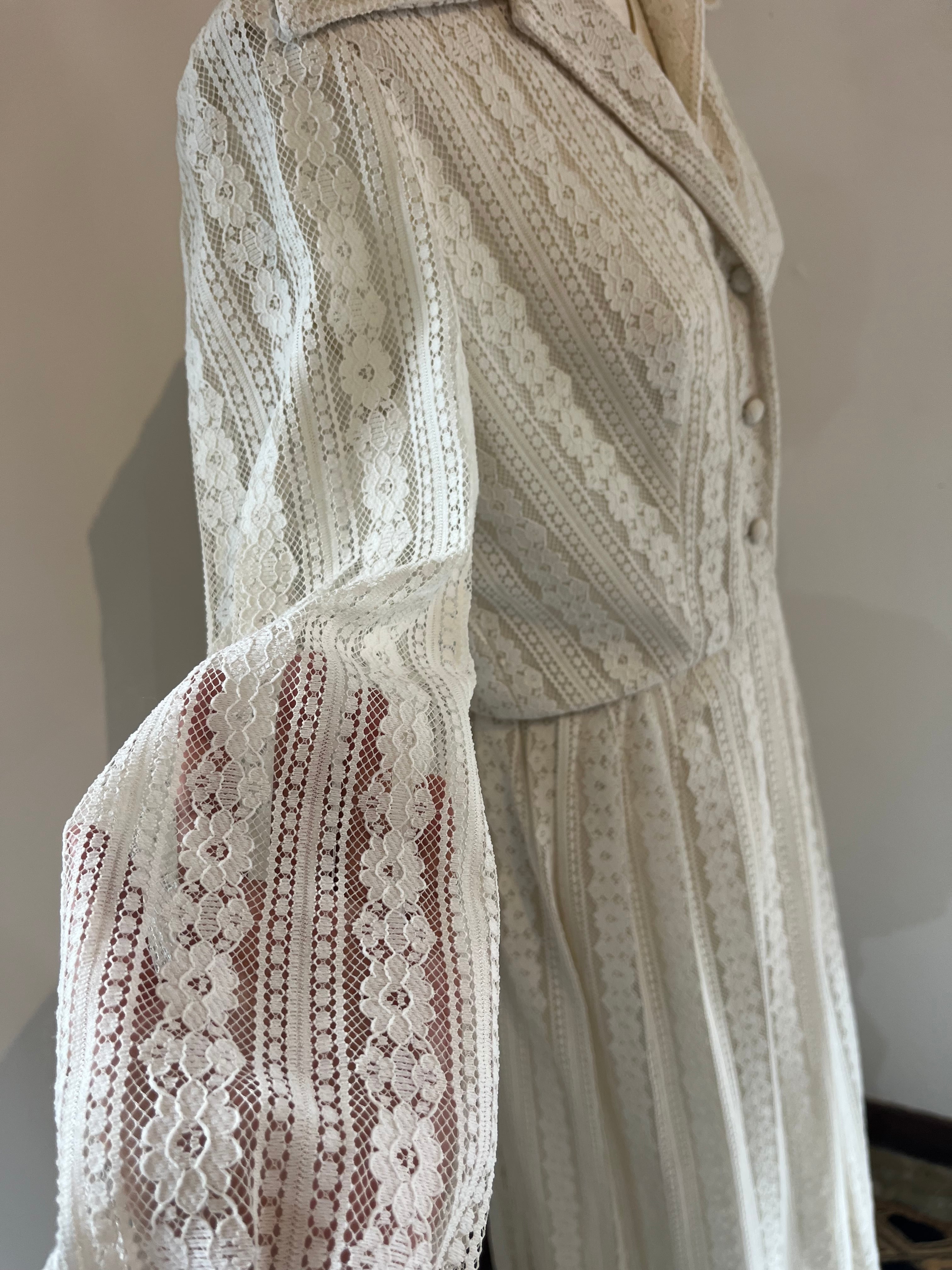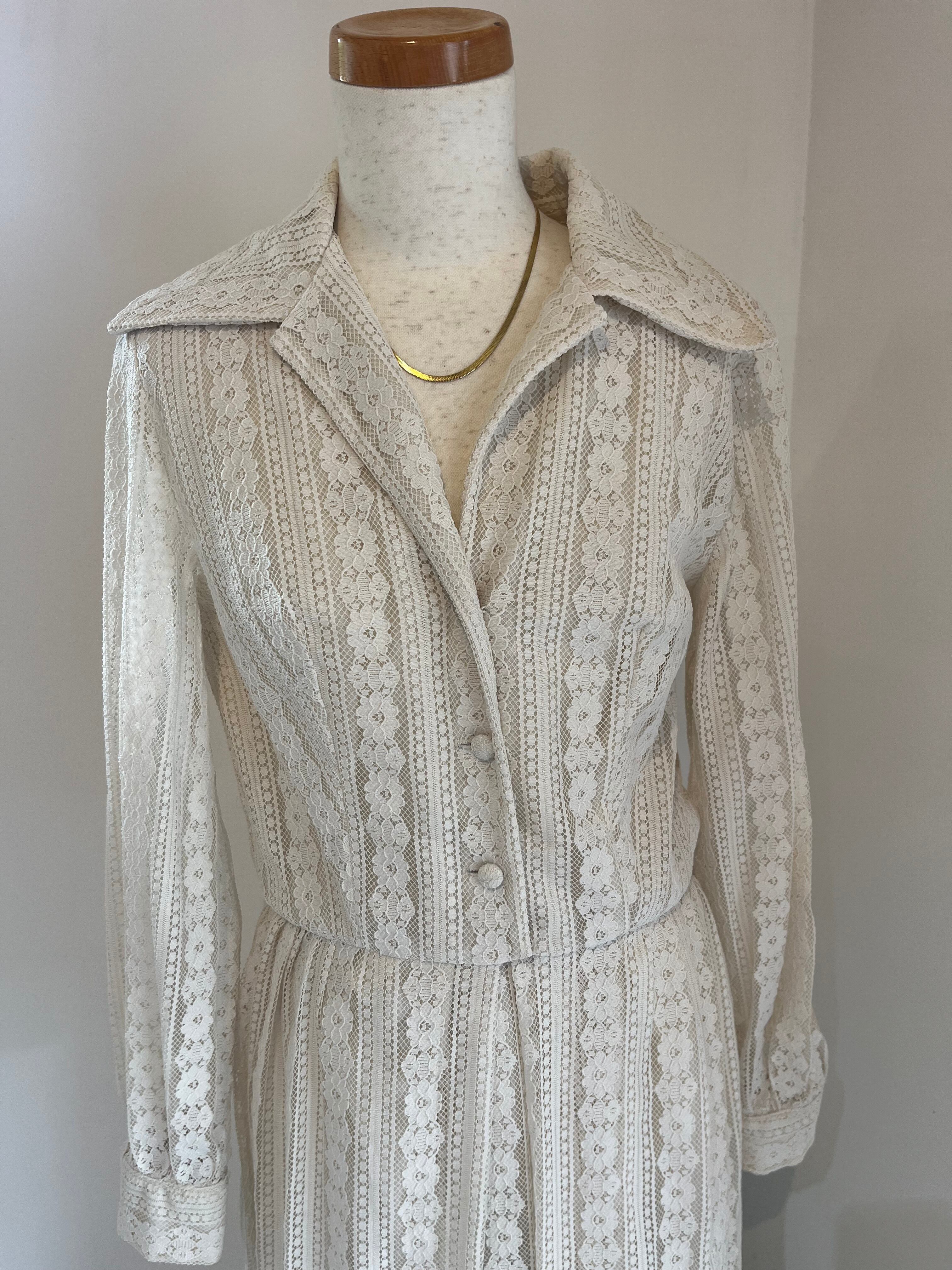 丁寧に施されたアンティークレースが美しいヴィンテージドレス。ウェディングシーンはもちろん、ニットやスウェットをレイヤードしてレースのスカートのように着回すのもおすすめ。