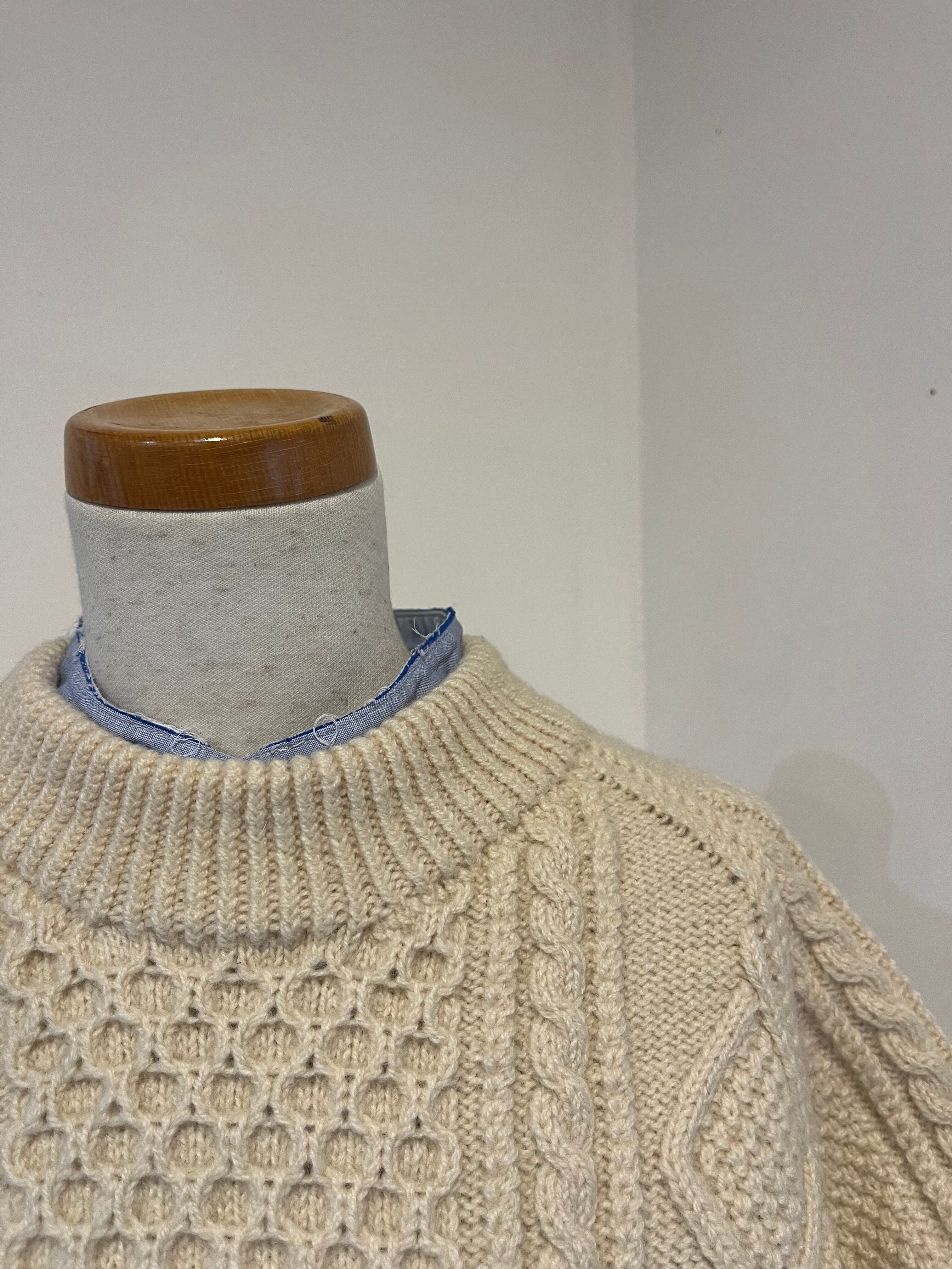 ニットやスウェットを重ねて、カットオフされた襟を見せるスタイリングもおすすめ。