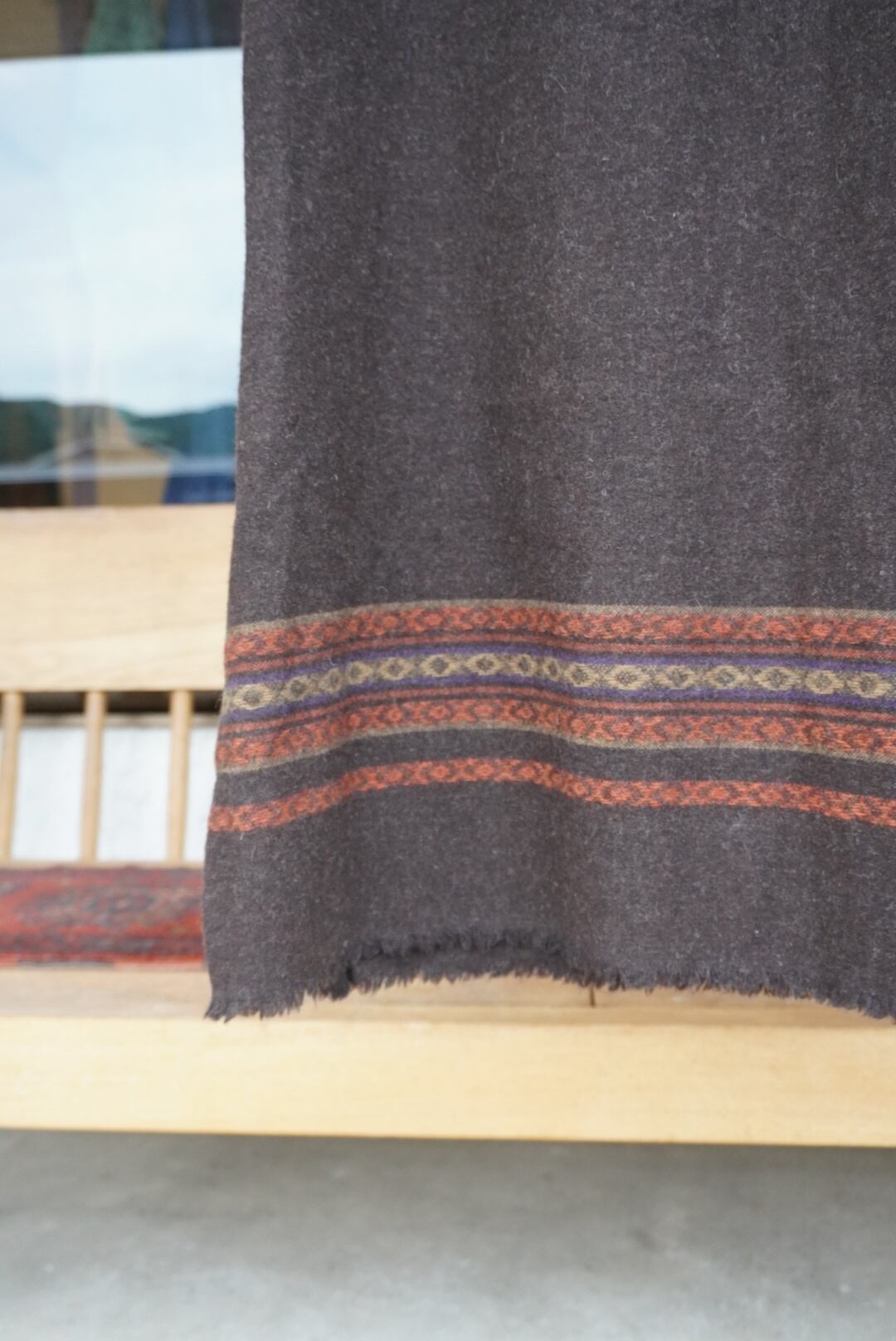 ブランケットを巻いたようなウエストの折り返しデザインが可愛いほっこりウールのロングスカート。