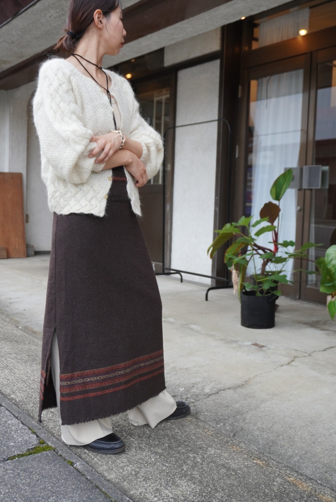 Wool line long skirt