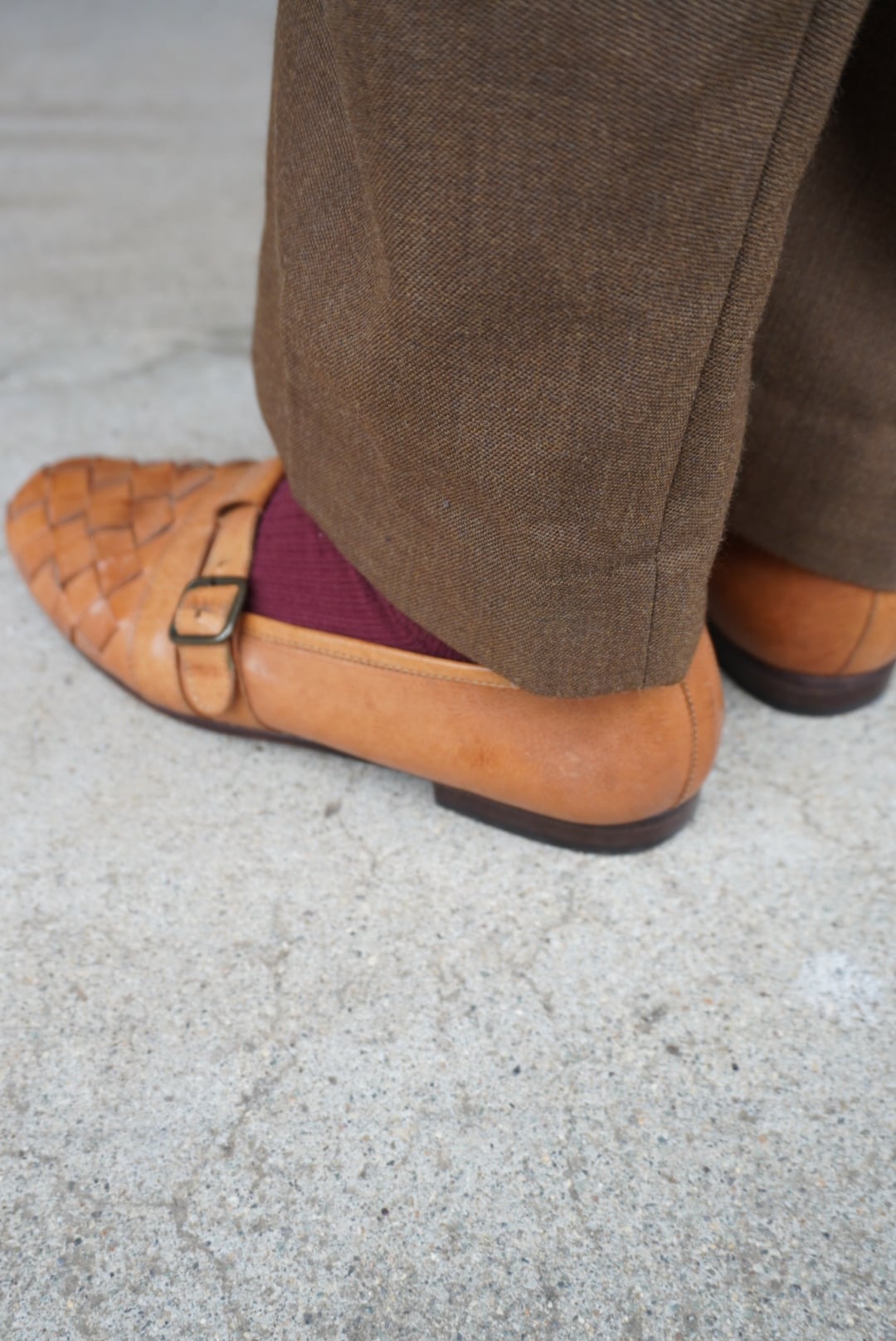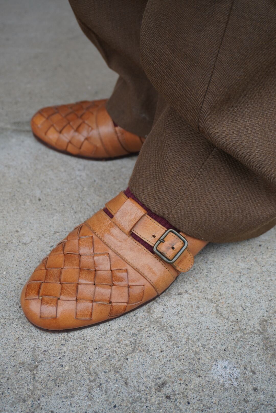 トゥが編み込みデザインになっているので恐らく春夏向けですが、厚手の靴下と合わせて履くのも可愛いです。
