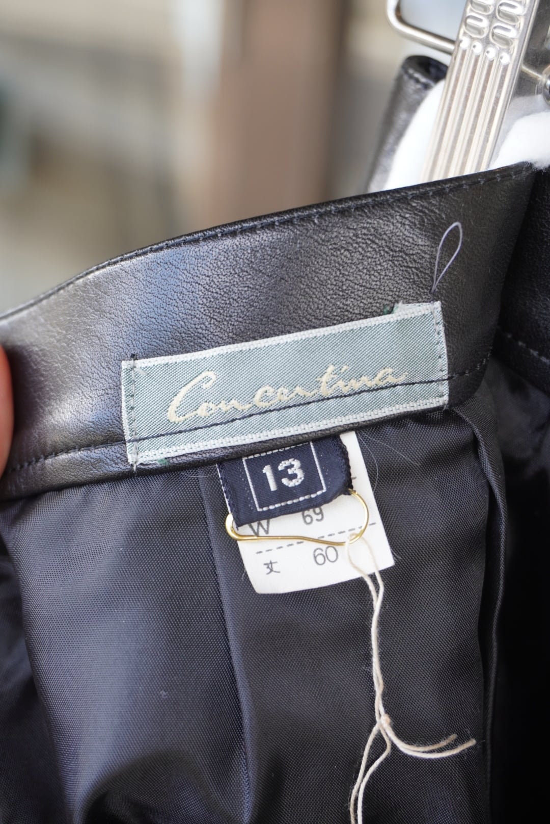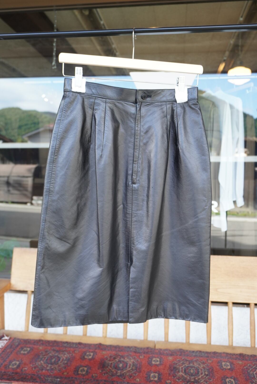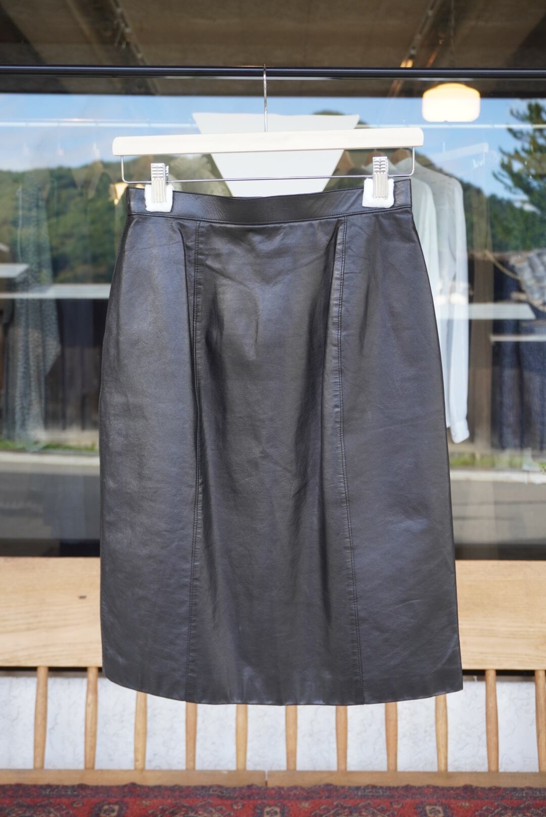 牛革の膝丈タイトスカート。