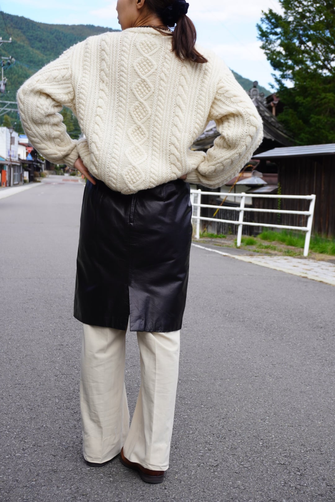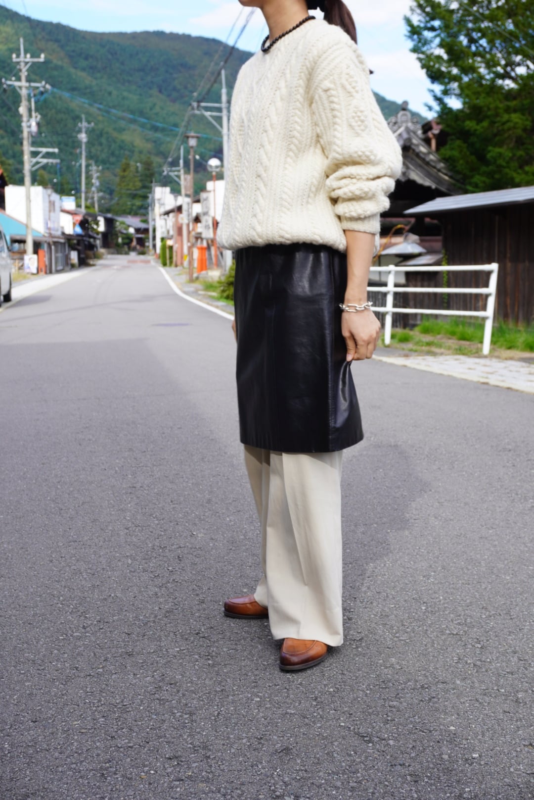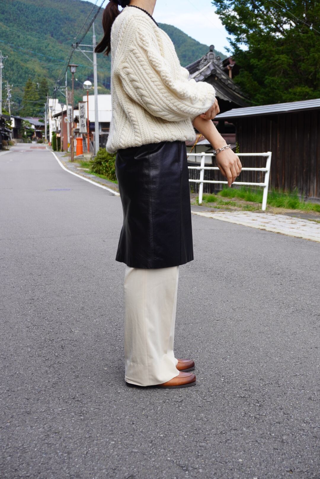 タイトスカートですがウエスト・ヒップに比較的ゆとりがあるので、パンツレイヤードもしやすくおすすめです。