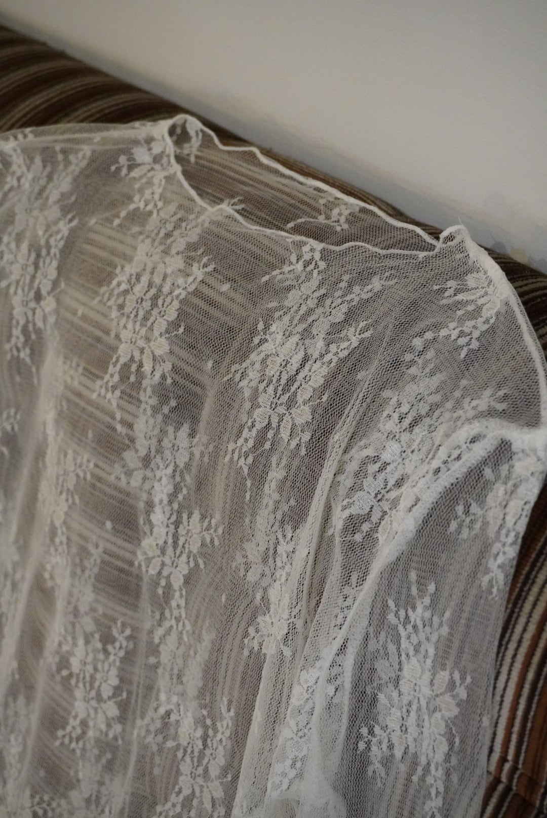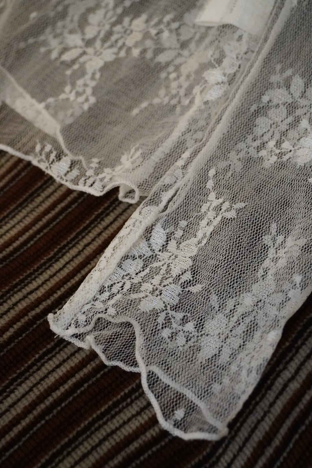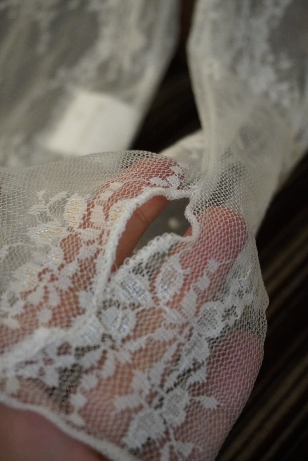 レース素材の指穴付きシアートップス。